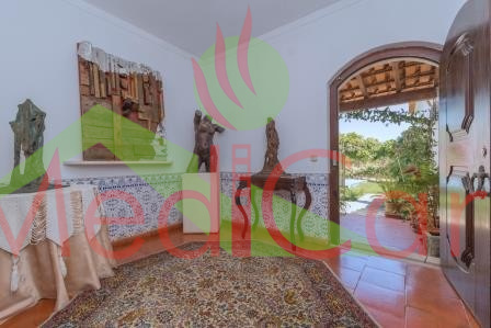 MOR831 - Quinta T3, situada na entrada do Cartaxo (sentido Azambuja-Cartaxo), com terreno de 5040m2, implantanda com Moradia (estilo rústico), com 268m2 de área útil e 67m2 de garagem e anexos. O imóvel possui 2 salas com 50m2 e ambas com lareira, cozinha equipada e com azulejos "Viúva de Lamego", suite, 2 quartos com roupeiro e caixilharia em alumínio termo-lacado com vidros duplos e oscilo-batente. O terreno possui uma extensa zona de jardim e zona de cultivo, com sistema de rega automática, poço e anexo de apoio com 30m2.