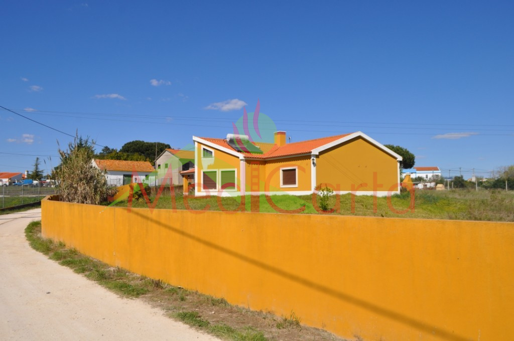 MOR869 - Moradia nova concluída estando neste momento falta a licença de utilização. Composta por sala com lareira e recuperador de calor, cozinha com despensa, suite com poliban, 2 quartos ambos com roupeiros, wc completo com banheira. garagem com portão automático e casa de maquinas. Extras: Painel solar, portão automático, barbeque, arvores fruto e moradia murada. Na periferia do Cartaxo em zona sossegada a 10 minutos do Cartaxo. IMÓVEL ATÉ 100% FINANCIAMENTO.